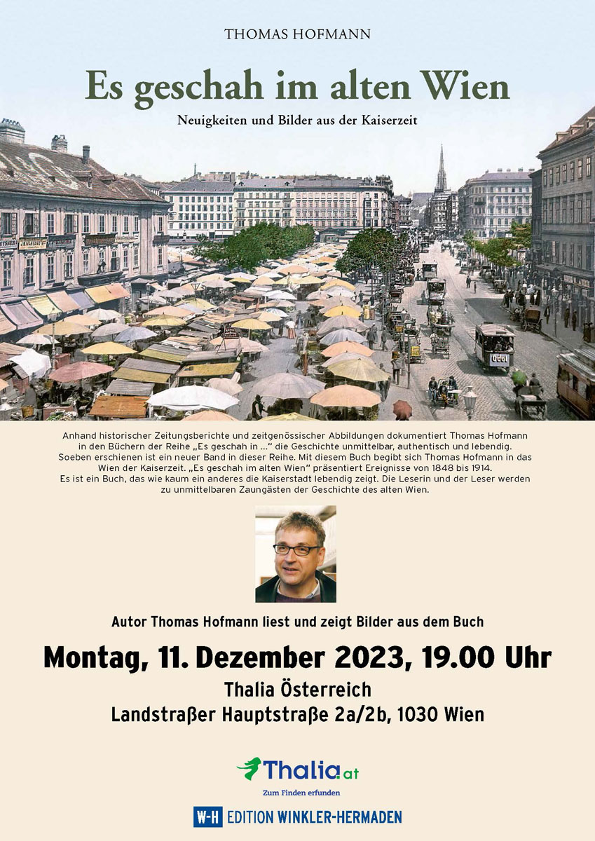 Montag, 11. Dezember 2023: Buchpräsentation „Es geschah im alten Wien“ bei Thalia