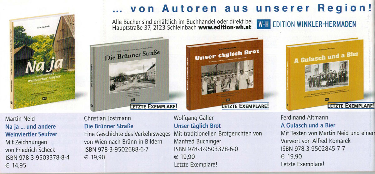… präsentiert alle Bücher über unsere Region, das südliche Weinviertel, von Autorinnen und Autoren aus der Region! Herausgegeben von WOW Wolkersdorfer Wirtschaft.