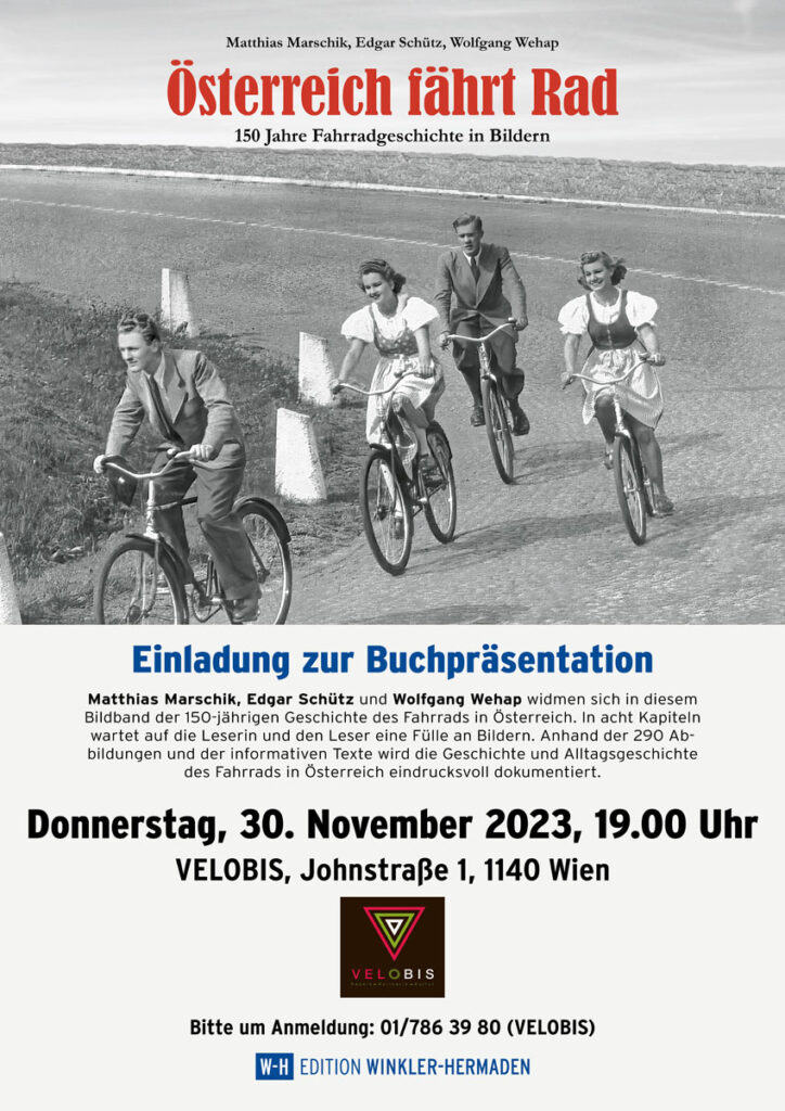 Donnerstag, 30. November 2023: Buchpräsentation „Österreich fährt Rad“ bei VELOBIS