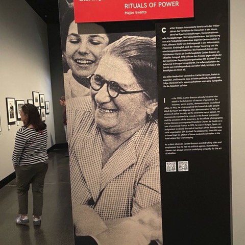 Cartier-Bresson, 1908-2004, studierte anfangs Malerei, später wandte er sich ganz der Fotografie zu, mit seiner Leica reiste er um die Welt. Er geriet im 2. Weltkrieg in deutsche Gefangenschaft, danach arbeitete er als selbständiger Fotograf. In der Ausstellung sehen wir zahlreiche historische und politische Großereignisse: die Krönung Königs George VI., die Befreiung von Paris, Deutschland nach Kriegsende, die Beisetzung Ghandis, China, Russland nach dem Tod Stalins, Kuba, Frankreich.
