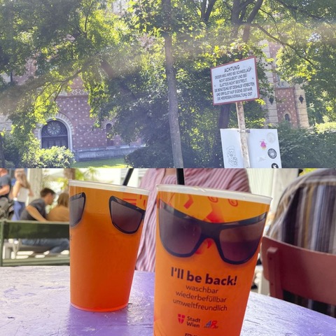 Noch immer sehr beeindruckt vom Leben und vom Lebenswerk dieses Mannes, sind Clasien und ich dann noch im Café des Areals gesessen. Rundherum war ein fröhliches Miteinander, durch die offenen Probebühnen konnten wir das Training der Impulstanz Veranstaltungen sehen.