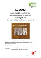 Mag. Wolfgang Galler liest aus seinem Buch „Unser täglich Brot – Von Bäckern, Müllern und Bauern im Weinviertel“