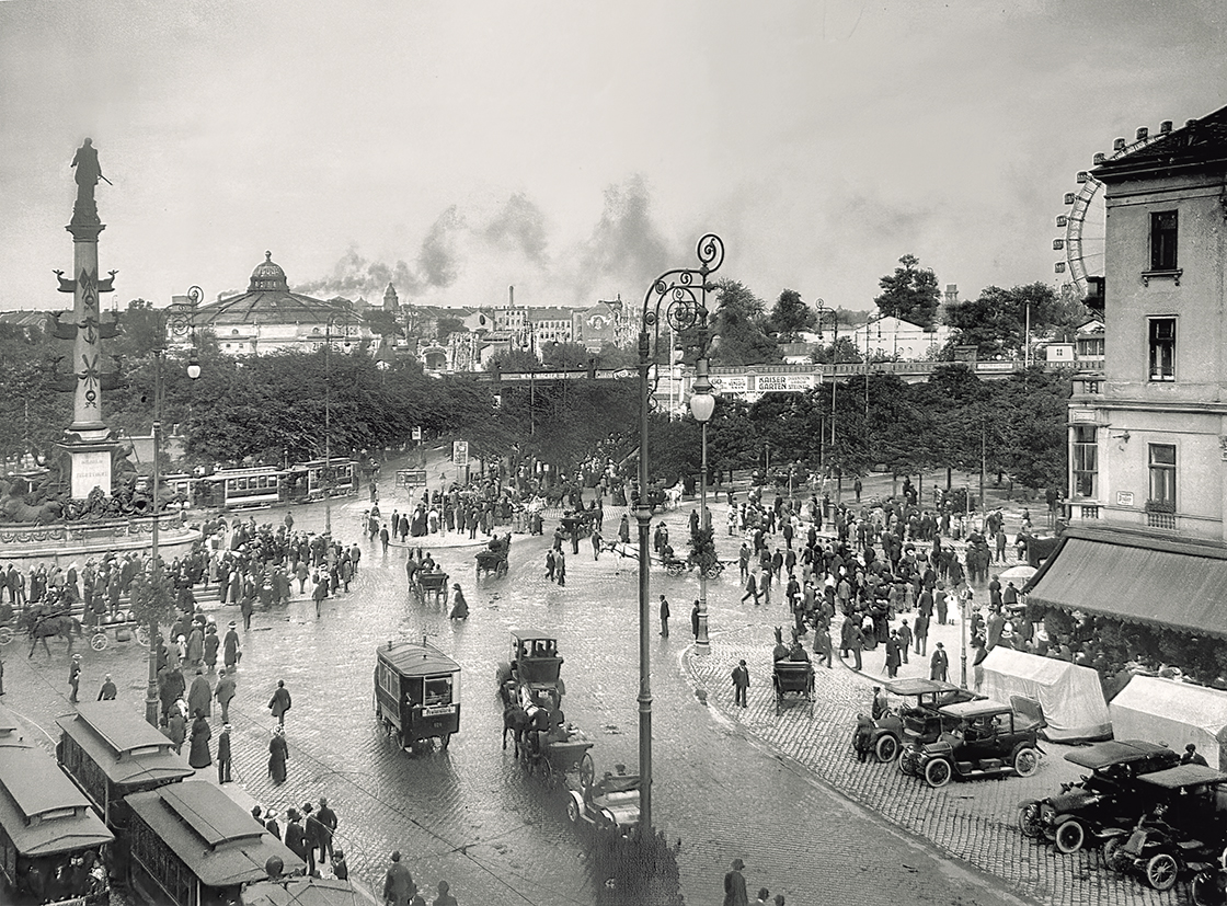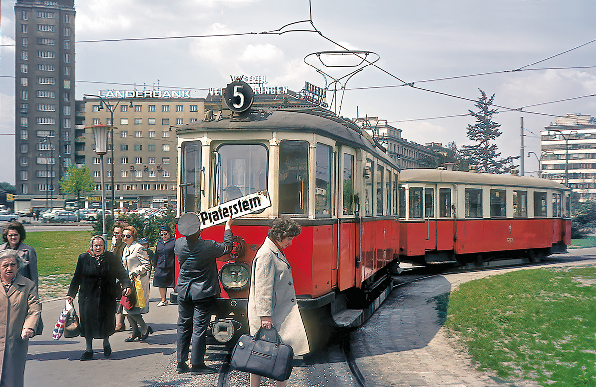 Der Praterstern war schon vor 150 Jahren ein zentraler Knotenpunkt im Personenverkehr der Stadt Wien. Hier vermengten sich die Menschenströme von Nord- und Nordwestbahnhof mit jenen der Stadtbahn und der ersten Pferdestraßenbahn, die auf der Praterstraße entlangzuckelte. Seit den 1950er-Jahren ist der Praterstern zudem ein wichtiger Kreisel für den Automobilverkehr. Heute heißt es oft „Umsteigen am Praterstern“: von der Schnellbahn in die U1, von der U2 in die legendäre Straßenbahnlinie 5, die seit 1897 den Praterstern mit dem Westbahnhof verbindet.