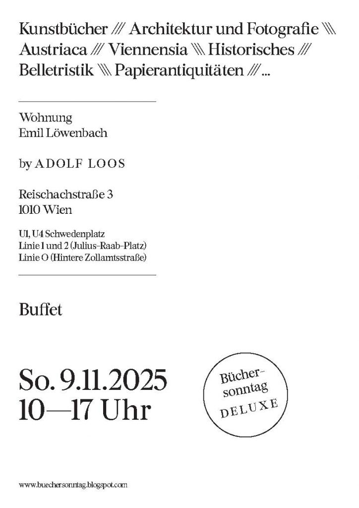 Am Sonntag, den 9. November 2025, gibt es in Wien von 10.00 bis 17.00 Uhr wieder einen Büchersonntag DELUXE, und wir sind mit unseren bibliophilen Ausgaben mit dabei.